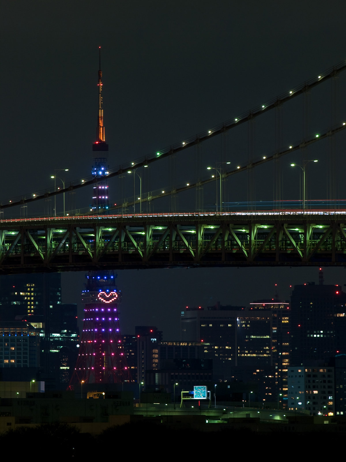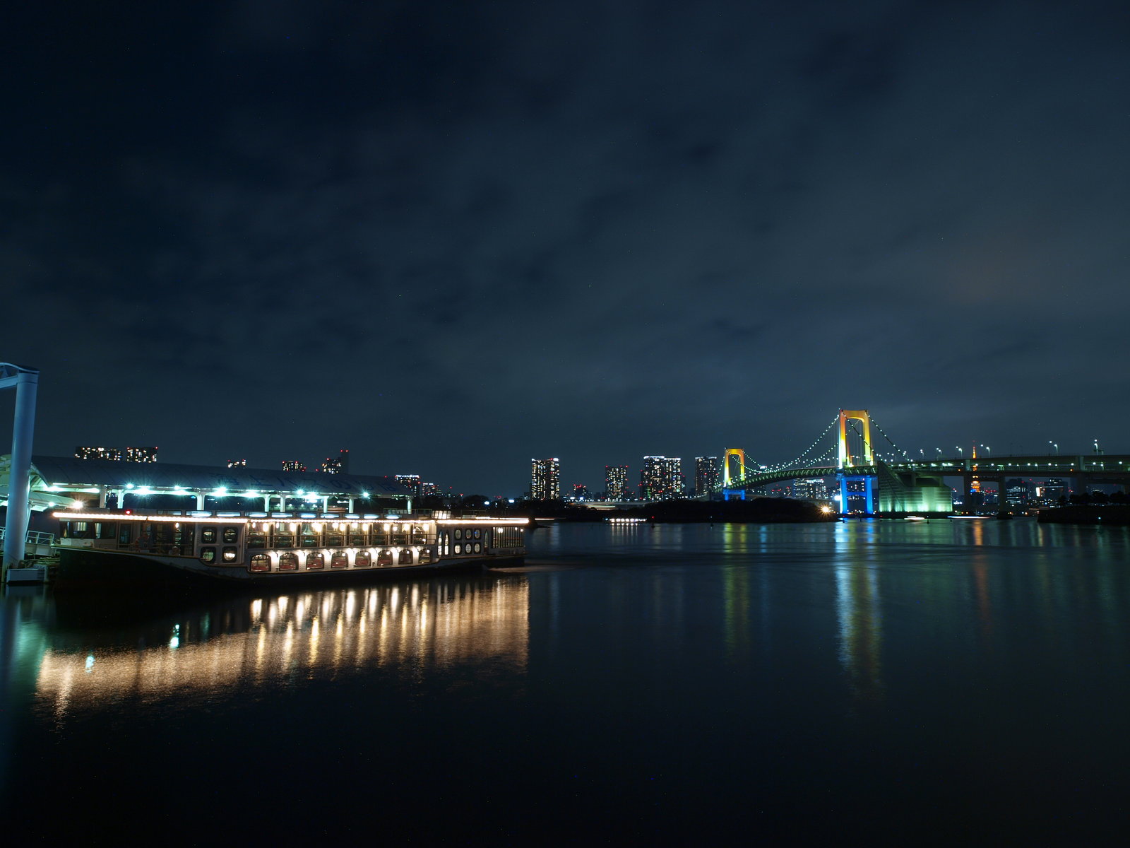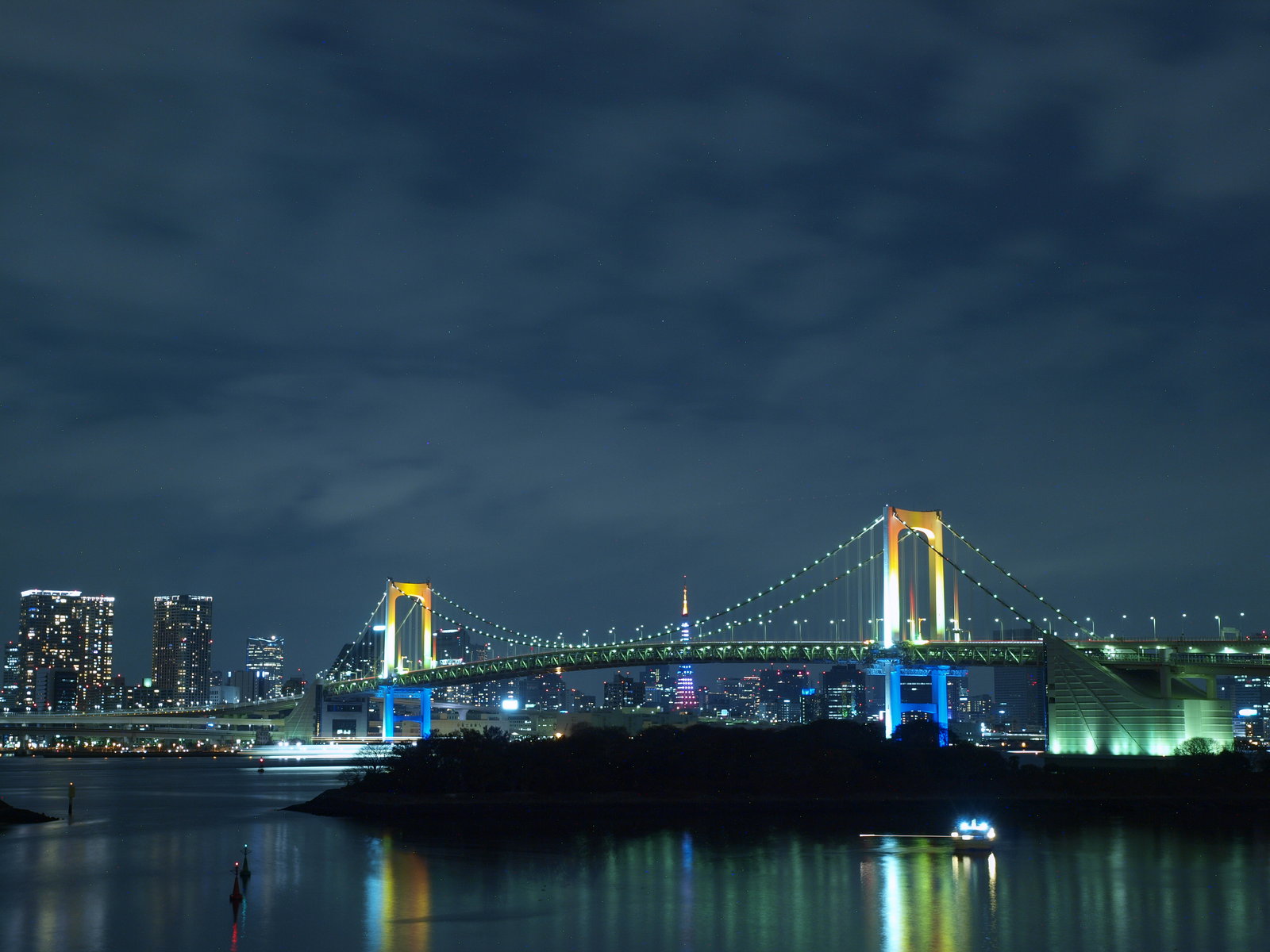 December 19, 2010 Rainbow×Rainbow! 今日は、夜景ですよ! この時期、夜景を撮らないとお正月を迎えられないねっ! 今日の夜景は、Rainbow×Rainbow! 期間限定で虹色のライトアップになっているレインボーブリッジと、 同じくクリスマスシーズン、それも20時からの10分間限定の 東京タワーのレインボーイルミネーションを同時に撮ろうと! これはもう、今日を外したら来年以降になっちゃいそうだったから、 思い切って行ってみましたー。 久々登場のガッチリ三脚と、重量級一眼 E-3の組み合わせで。 到着前に既に疲れた身体を引きずるようにゆりかもめに乗り、 やって来ましたお台場海浜公園! そして、レインボーブリッジ! お台場に着く前に、ゆりかもめ車内からレインボーブリッジの 虹色ライトアップは肉眼で確認してしまったので、 ちょっと感動が薄かったけど、それでもとても感動的ですよ! 橋が近いし海が近いので、水面に反射するレインボーブリッジもキレイ! 派手な色した屋形船とかも、ザブザブ浮かんでいてそれもキレイで! レインボーブリッジと東京タワーが重なる場所まで、 移動しながら撮影していると、ちょっとオサレな船も居たので、 一緒に撮ってみても、画になるですよ。 そして、お待ちかねの20時! 一旦、東京タワーの照明が落ち、次の瞬間・・・。 東京タワーに七色の照明が点いて・・・。 それはキレイなRainbow×Rainbow!が観れたわけですよ! 寒い中、独りで頑張って行った甲斐があったよ!