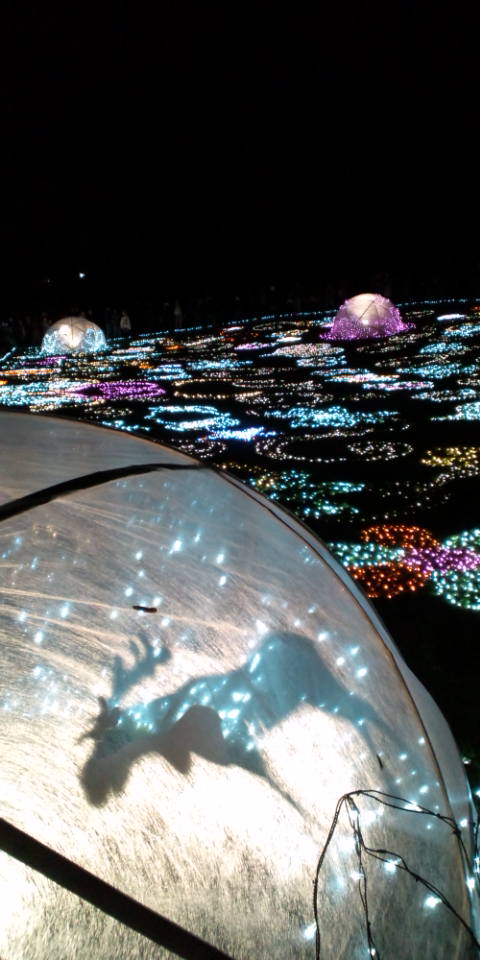 December 23, 2010 クリスマスイルミネーション。 今日は、昭和記念公園@立川のイルミネーションを見ましたよ。 いや、「撮り」にも行ったんですが、今日は花火があるので、 三脚は使用禁止って話を聞いて、手持ちじゃあねぇ。。。 と、若干テンション低めでしたが、とりあえずイルミネーションです。 しかし、E-3の強力な手ブレ補正をもってしても、 イルミネーションを手持ちで撮るのは、無理だったみたい。 ざっと写真をチェックしたら、ひどい有様でした。。。 なので、今日の画像は携帯の写真のみで。。。 すみません。