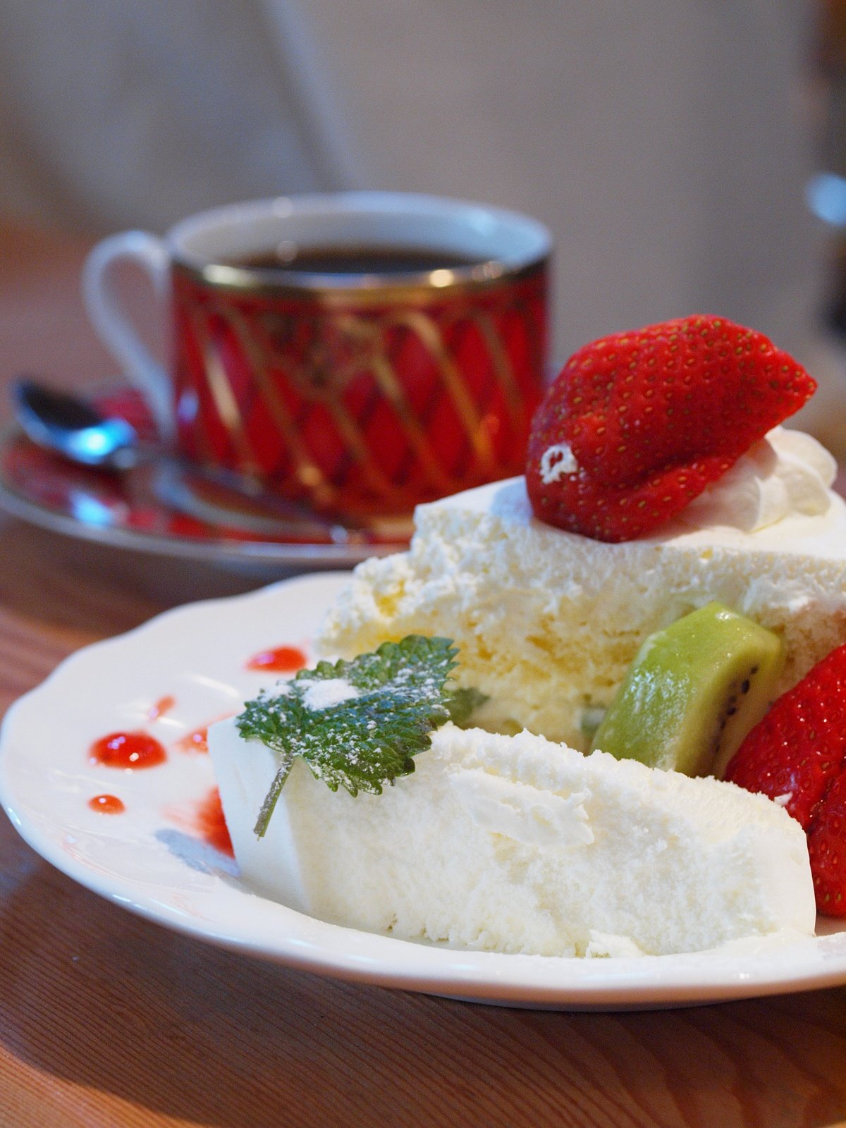 December 25, 2010 メリークリスマス! メリークリスマス! みなさん、どんなクリスマスをお過ごしでしょうか? ハッピークリスマスですか? 僕は、とりあえず近所の喫茶店に年末のご挨拶がてら、 コーヒーとケーキを食しに行ってきましたー。 ちゃんとお伺い前に電話を入れて、ケーキが売れ残っているか確認するのは、 常連の証です。(笑) 今日のコーヒーチョイスは、コロンビア。 あまり酸味が好きくないので・・・。 お店では、どんな食器でコーヒーが出てくるのかも楽しみ。 今日使われたカップ、なかなか綺麗で気に入ってるのです。 カップの柄と、カップに映るソーサーの柄がとても綺麗。 ケーキは、イチゴのデコレーション。 ちょっとイチゴに余分な生クリームが付いちゃってますが、 そこがホームメイドな感じで、イイネ!ってコトで。 今日は、E-620を持って行ったのですが、 アートフィルタに頼っちゃダメだな、と改めて思ったりしました。 明日は、前の職場のお友達とどこ夫婦。で、お散歩カメラですっ。 楽しみー!