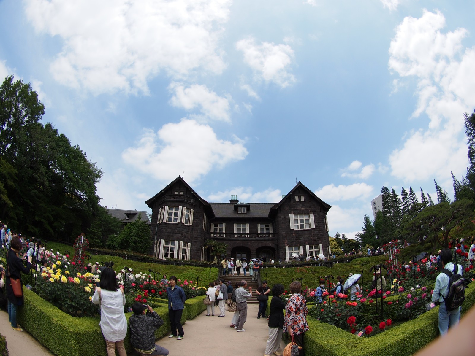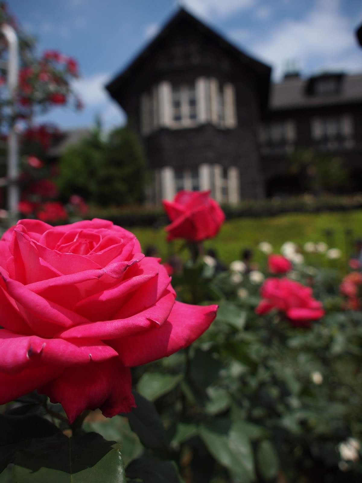 シャレた洋館と美しいローズガーデンですよ。