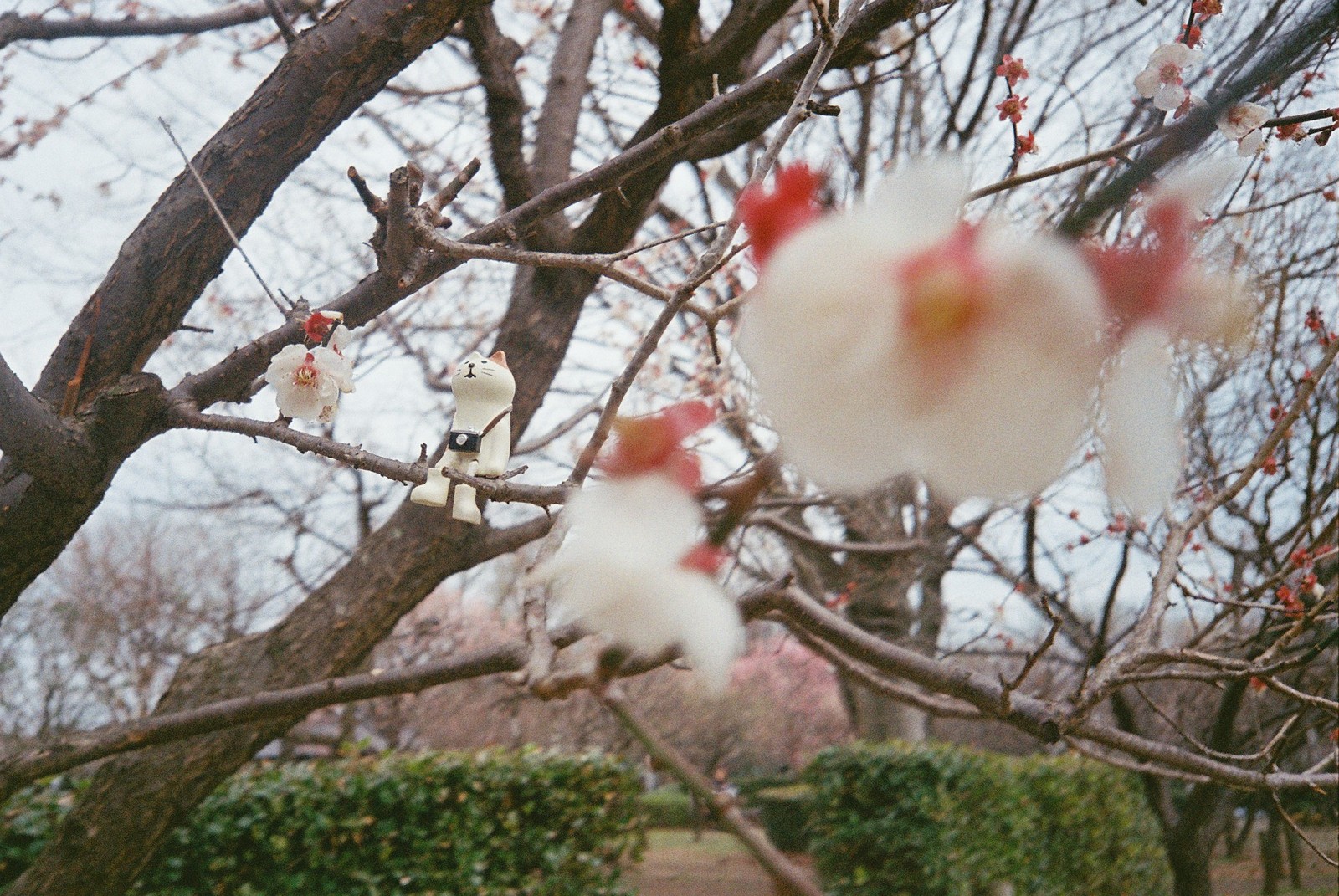 支度をして玄関を出たら、近所の公園にあるカンザクラの木が気になった。