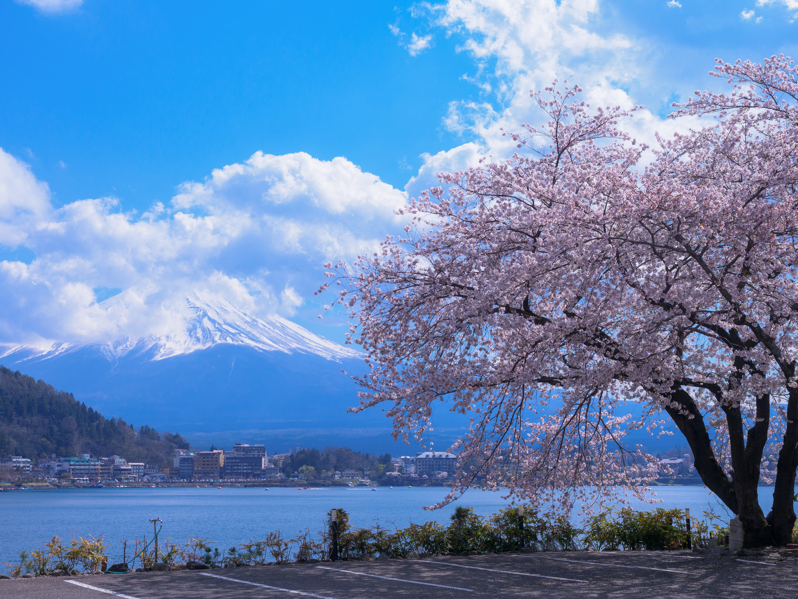 山中湖はサクラが全然見当たらなくて、河口湖まで足を伸ばしてみたけど、