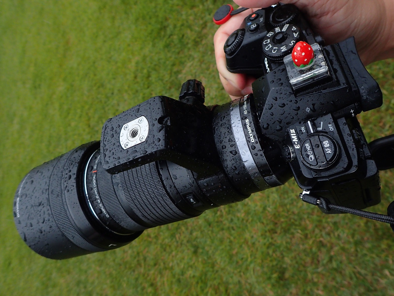 対応レンズを組み合わせれば、暴風雨の中でもレインジャケット要らずの撮影が可能。