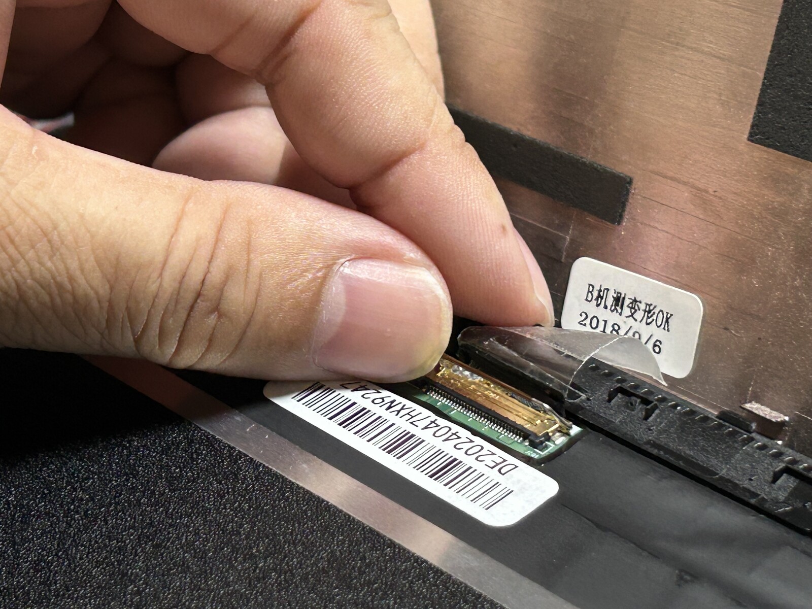 ベゼルが開いたら、液晶に繋がっているコネクタを外して、液晶を取り外します。
