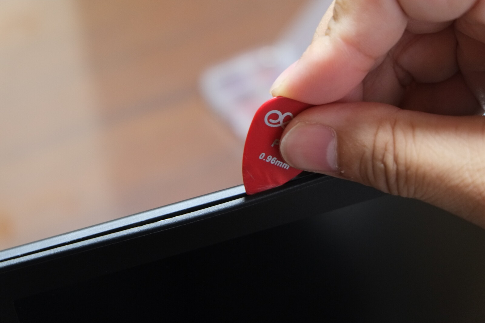 スキマを探して、そこからピックを入れて、爪を割らないように慎重に開けていく。