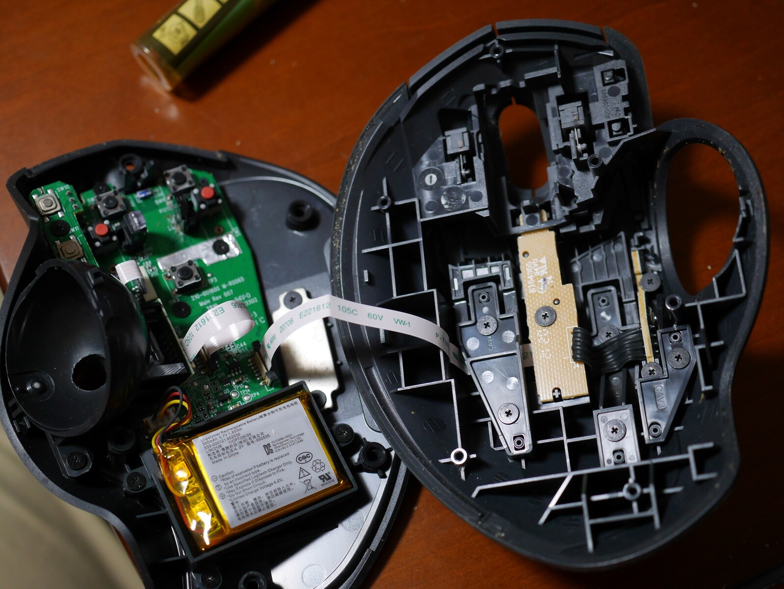 左右のボタンスイッチはOMRON製の3本足のスイッチですが、静音スイッチは2本足。