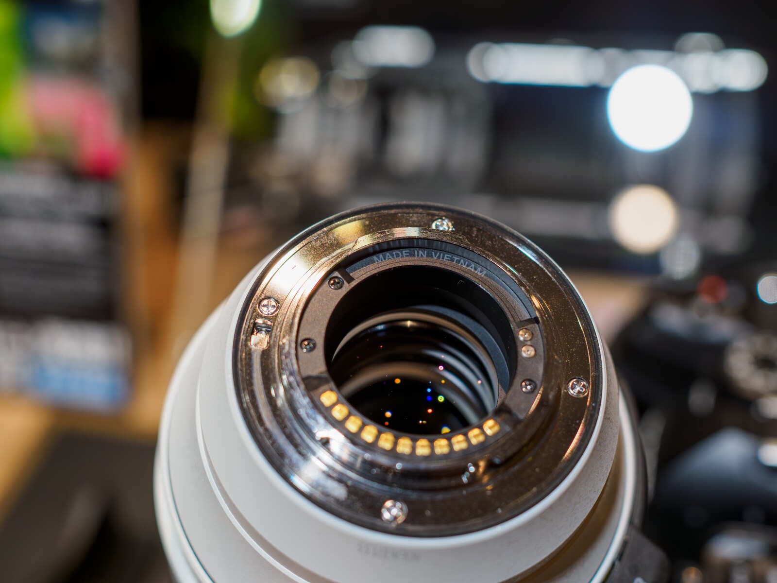 鏡筒も表面が梨地?のような光沢のない白塗装で傷に強いレンズがある。