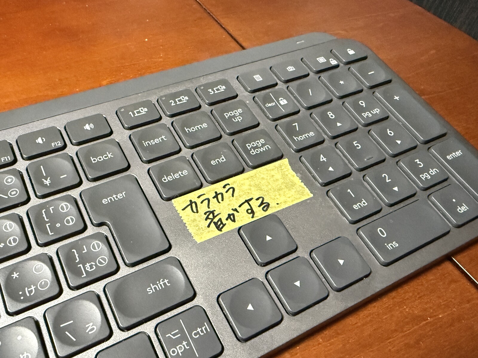 「カラカラ音がする」との注意書き付きのMX Keys。