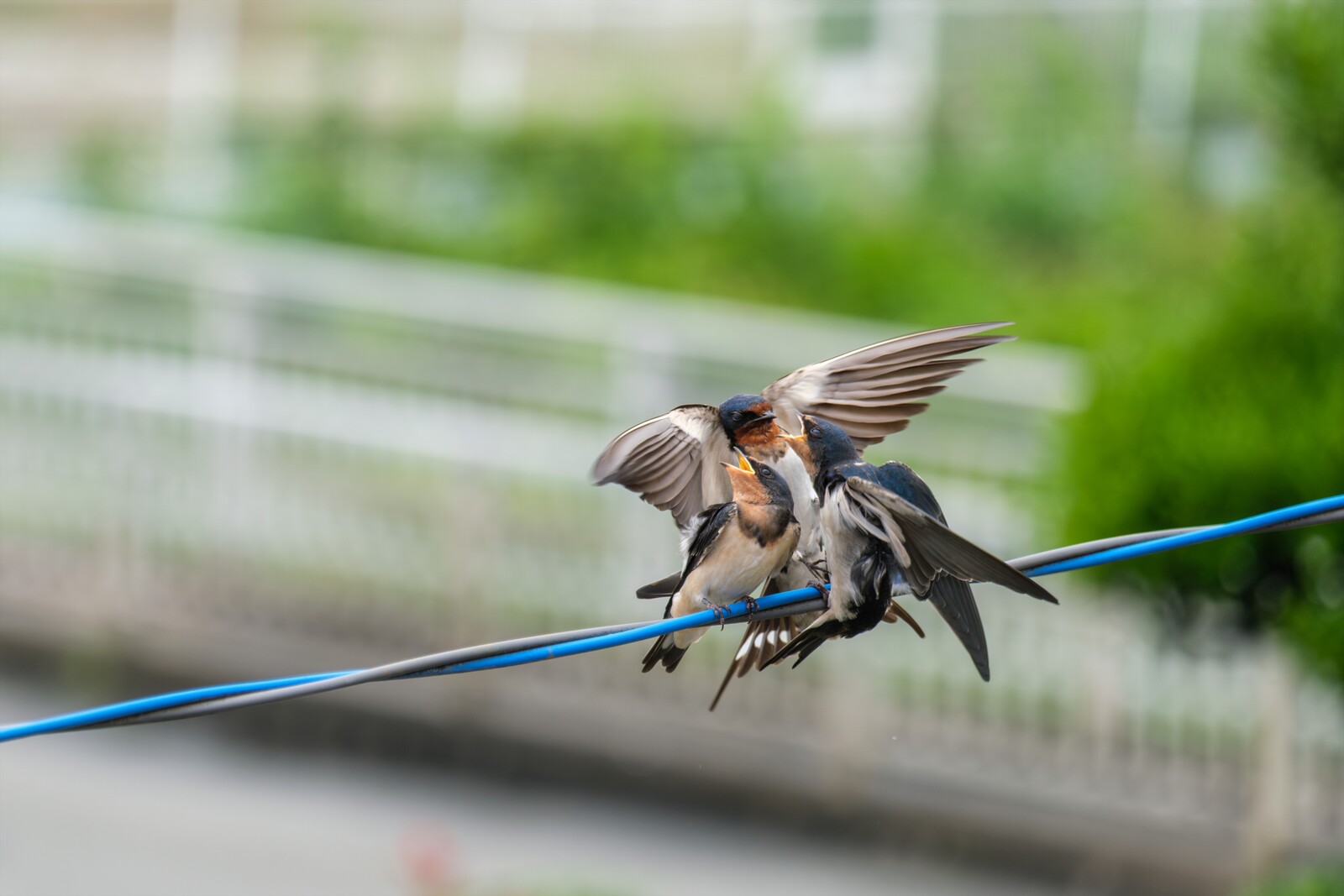 ツバメの子が大きく成長して、空も飛べるようになりましたが、