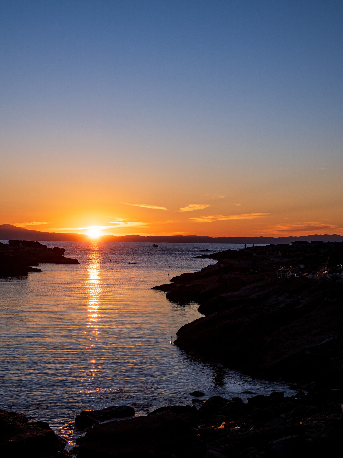 海に沈む夕陽を見送り、「素敵な明日」に期待する人々の影。みたいな感じ。
